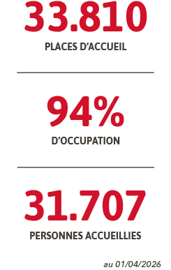 Fedasil et ses partenaires disposent, au 1er avril 2026, d'une capacité d'accueil de 33.810 places réparties dans des centres collectifs et des logements individuels. 31.707 personnes y sont accueillies, soit un taux d’occupation de 94%.